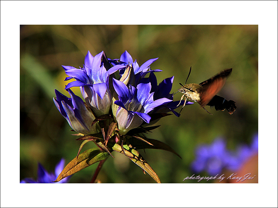 용담에 놀러 온 박각시나방