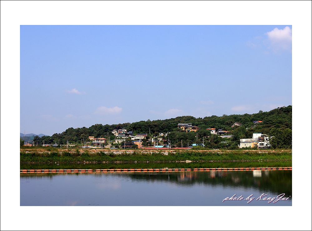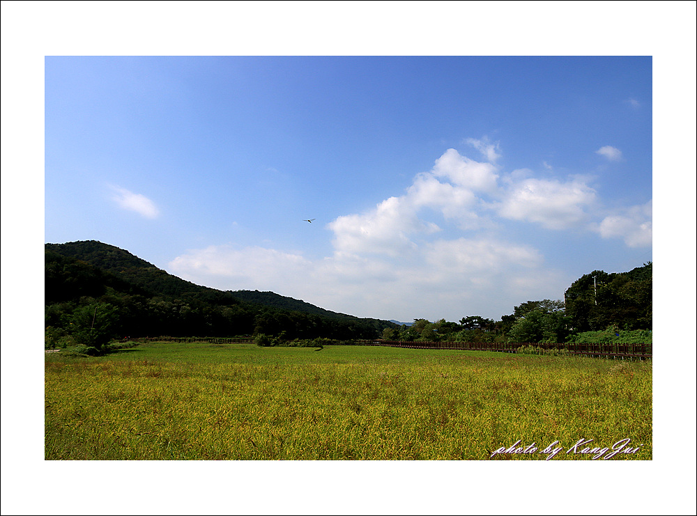 벼는 익어가는 중이고 잠자리 높게 날아 가을 하늘에 그림을 그립니다.