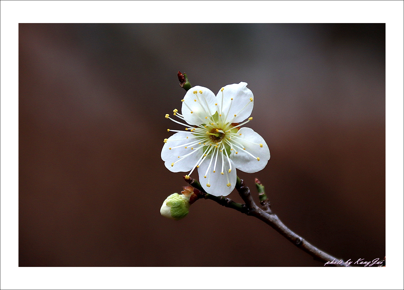 매화가 한 두 송이씩 꽃 잎을 열고 있다.