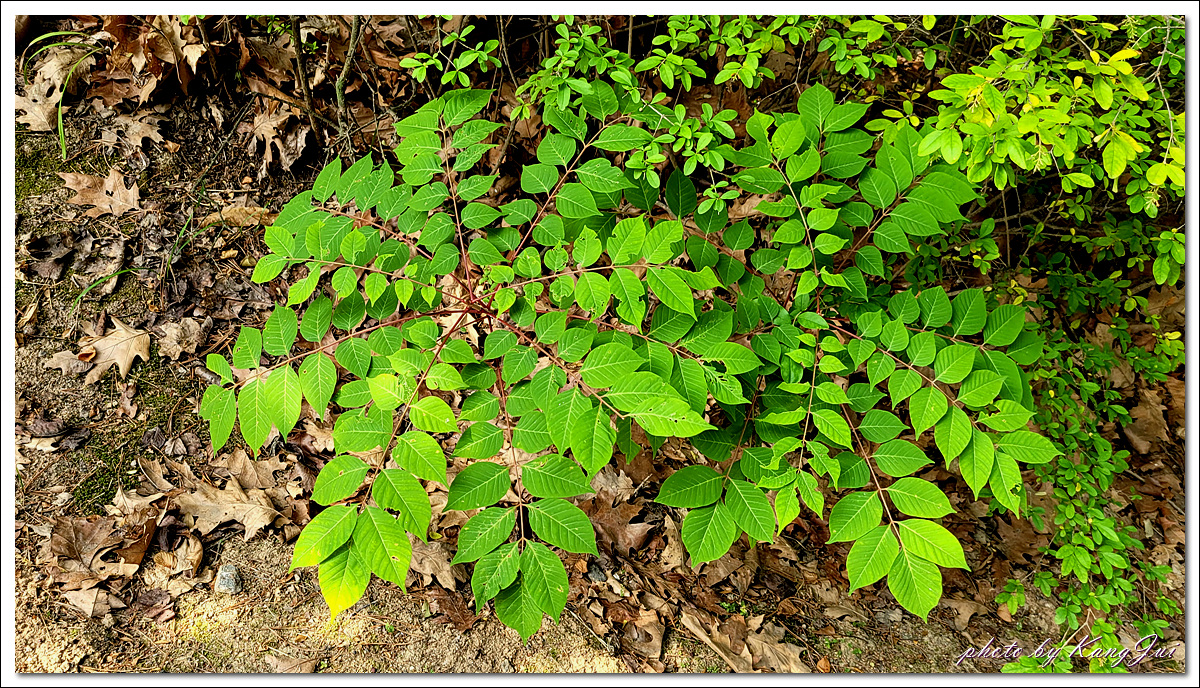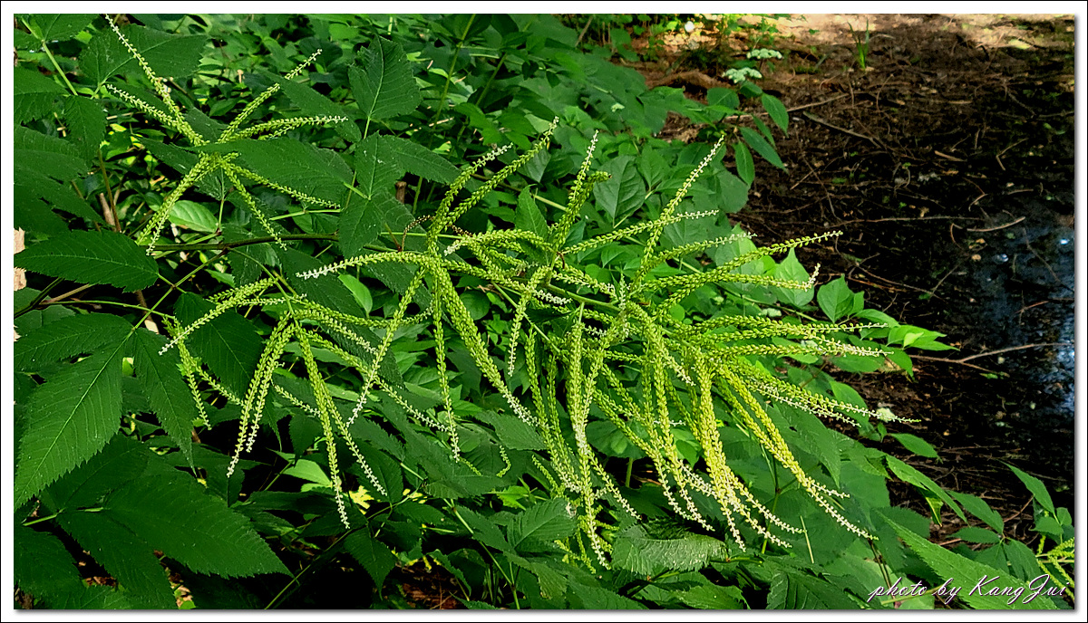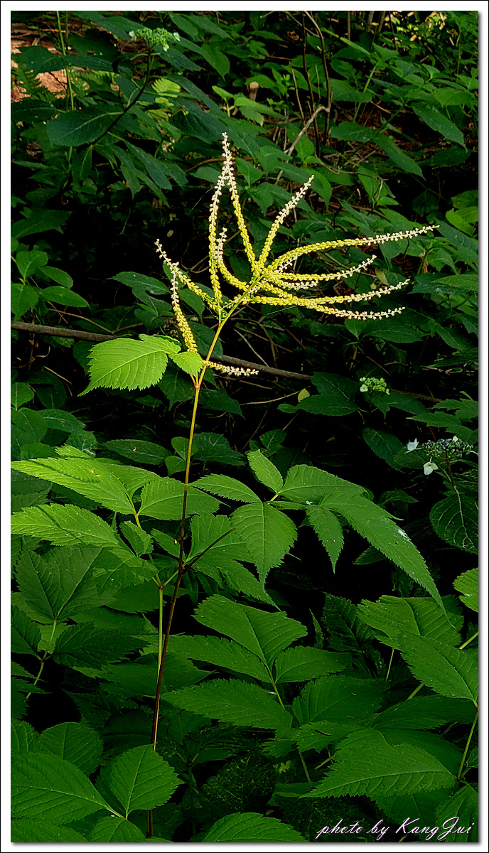 잎은 어긋나며, 2회 또는 3회 깃꼴겹잎, 노루오줌의 잎과 비슷하다.