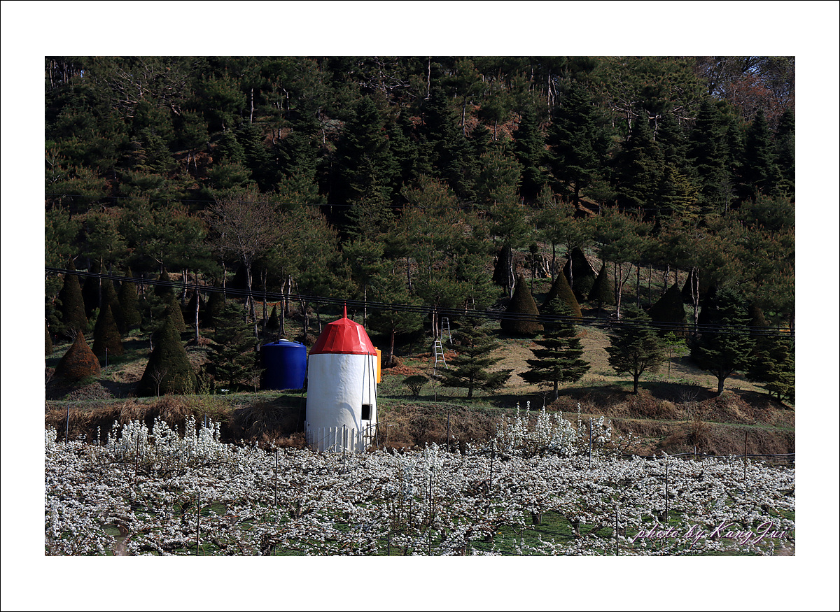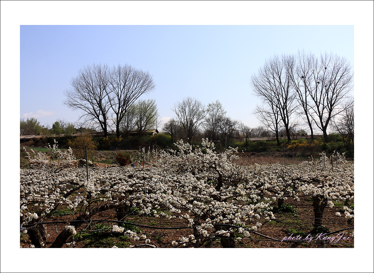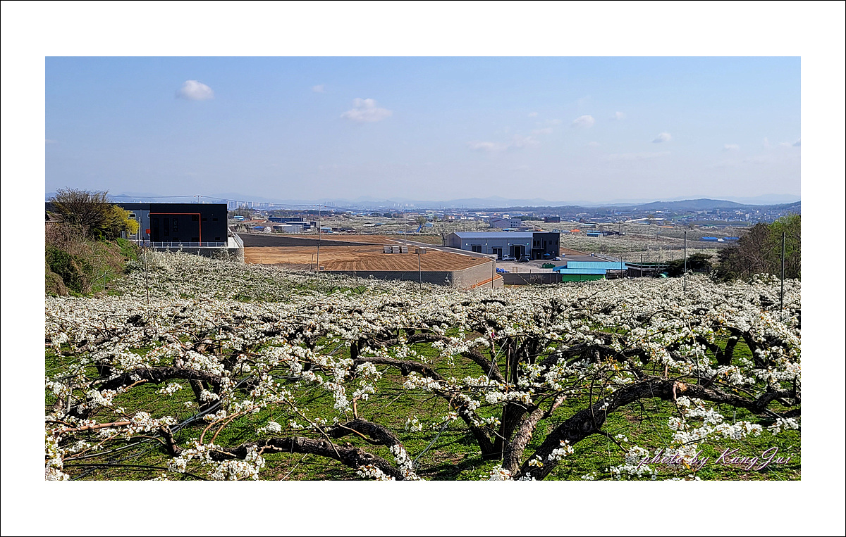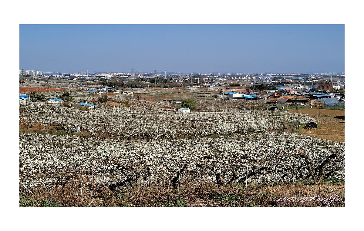 너른 들에 보이는 배꽃들은 흰 눈이 쌓인 듯 착각을 하게 한다.