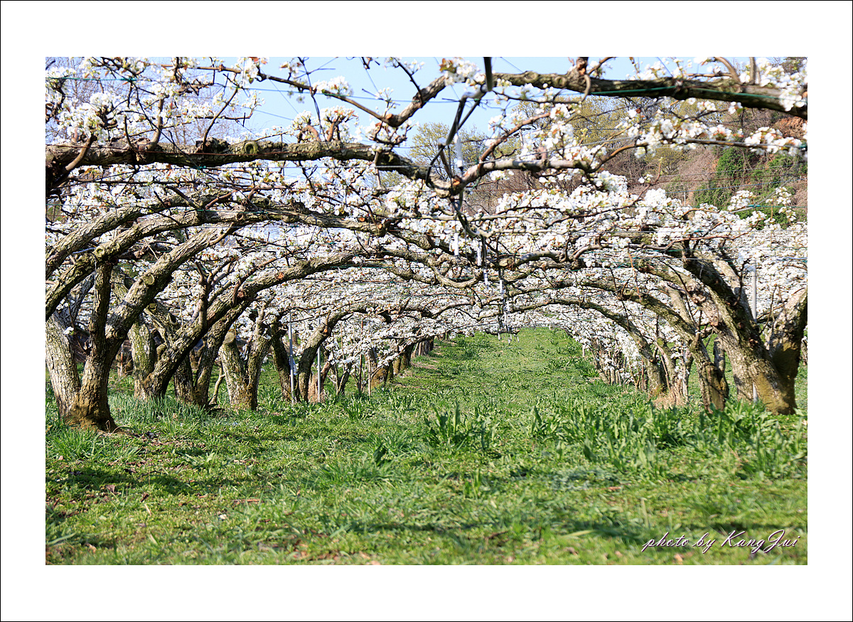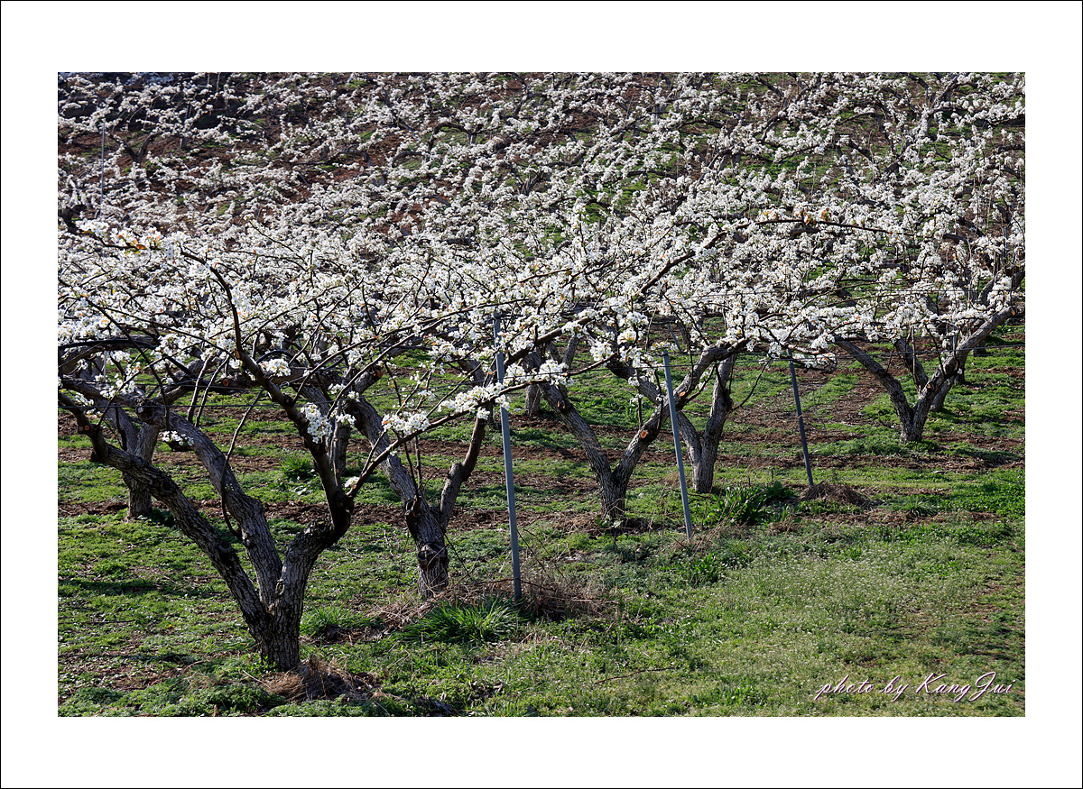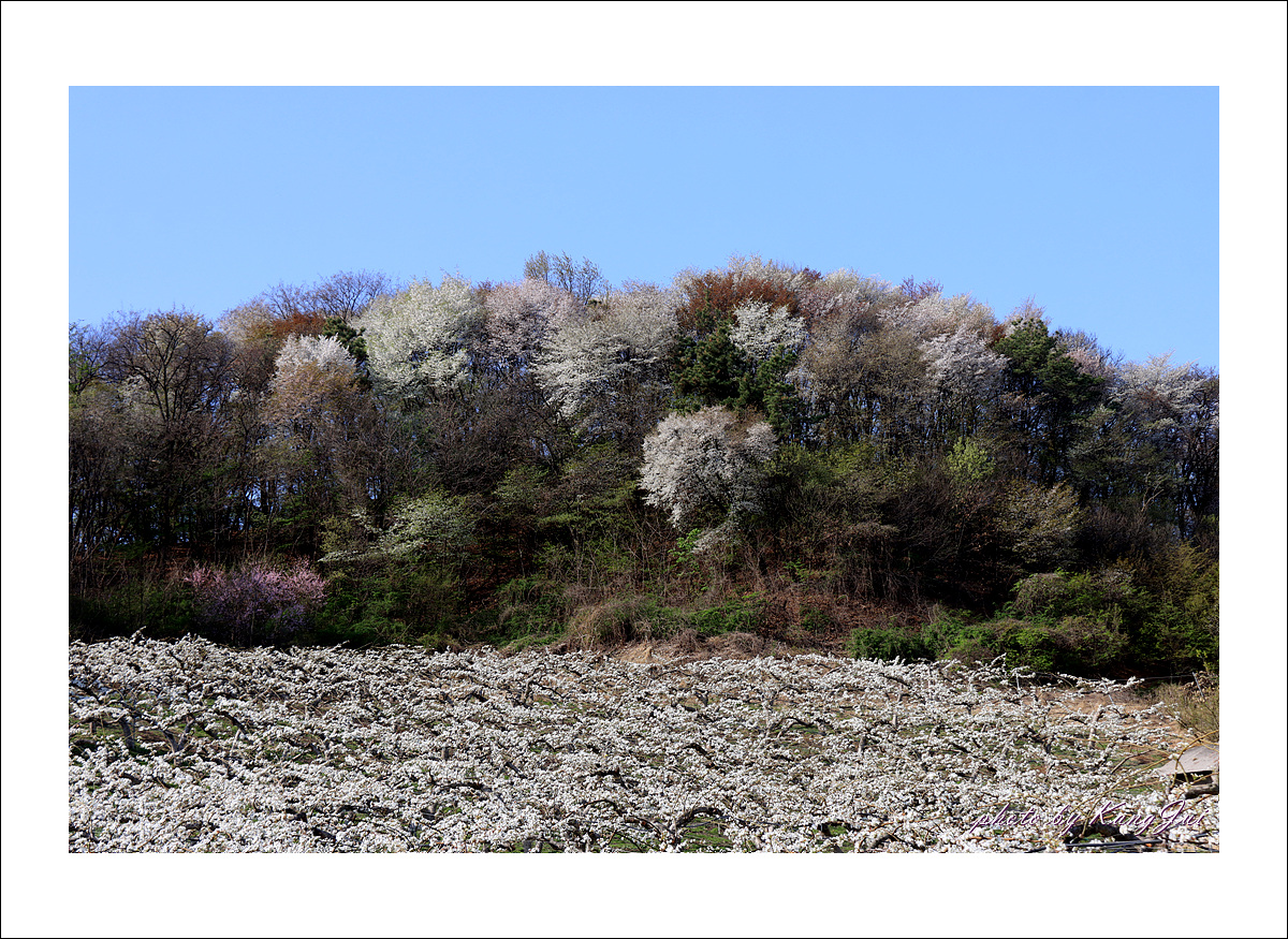 너른 들에 보이는 배꽃들은 흰 눈이 쌓인 듯 착각을 하게 한다.