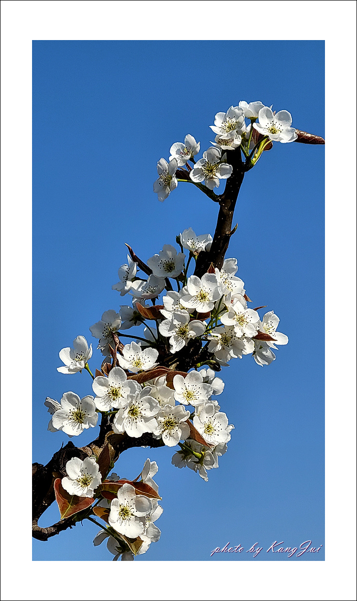 예년보다 일찍 핀 배꽃이 추위에 피해 없이 열매를 잘 맺기를 바란다.