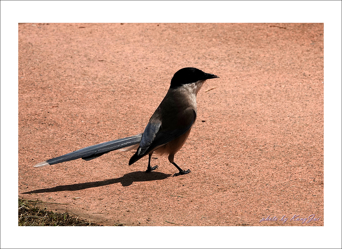 물까치 장미찾아 날아 왔나보다.