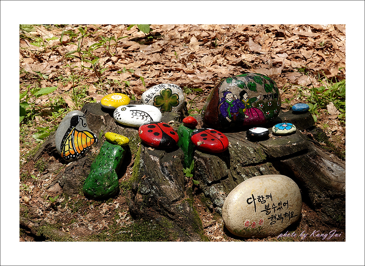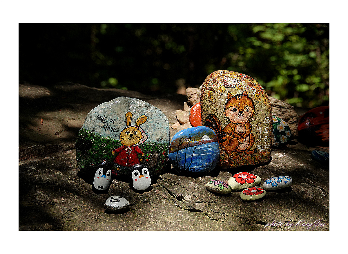 주변엔 돌멩이작가의 조약돌그림이 전시되어 있다.