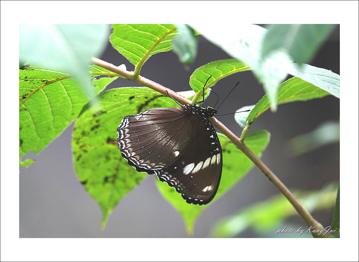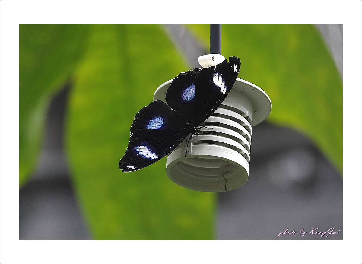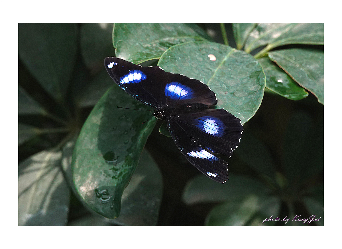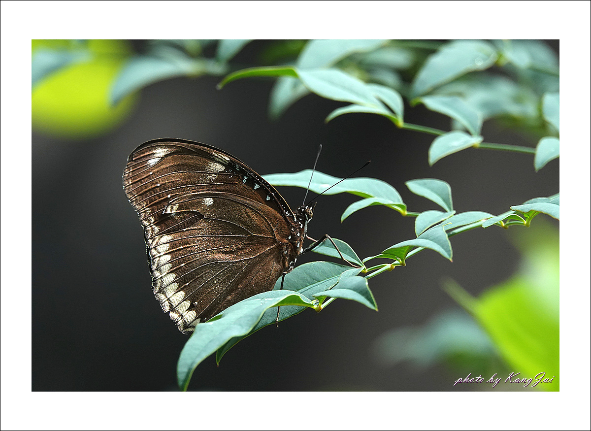햇빛을 받으면 날개에 푸른빛이 도는데 오늘은 비 오는 날 너무나 어두운 날씨라 그 푸른빛을 제대로 보기 어려웠다. 아직은 미접으로 분류하고 있는데 서울숲나비정원에서 볼 수 있었다.