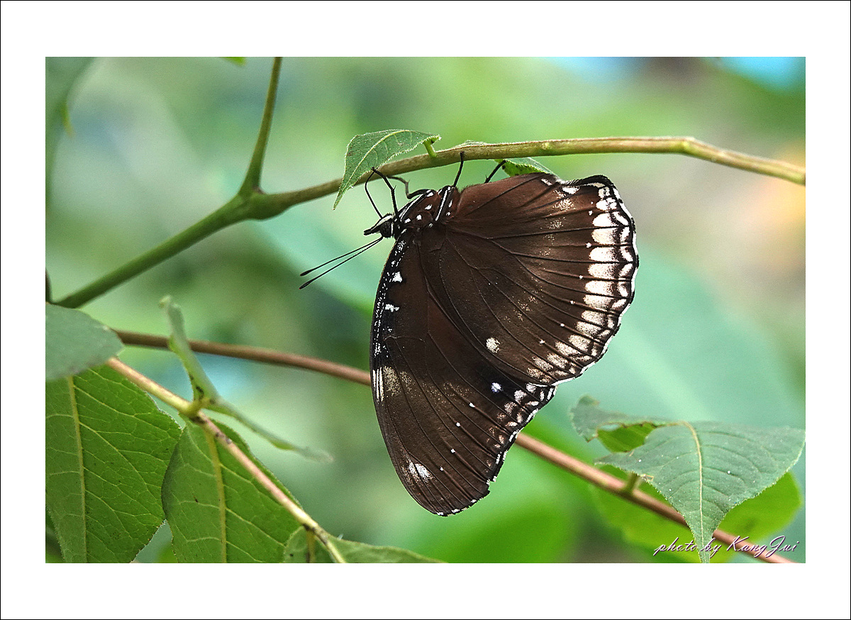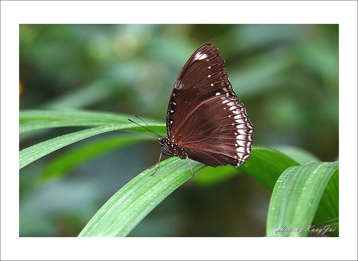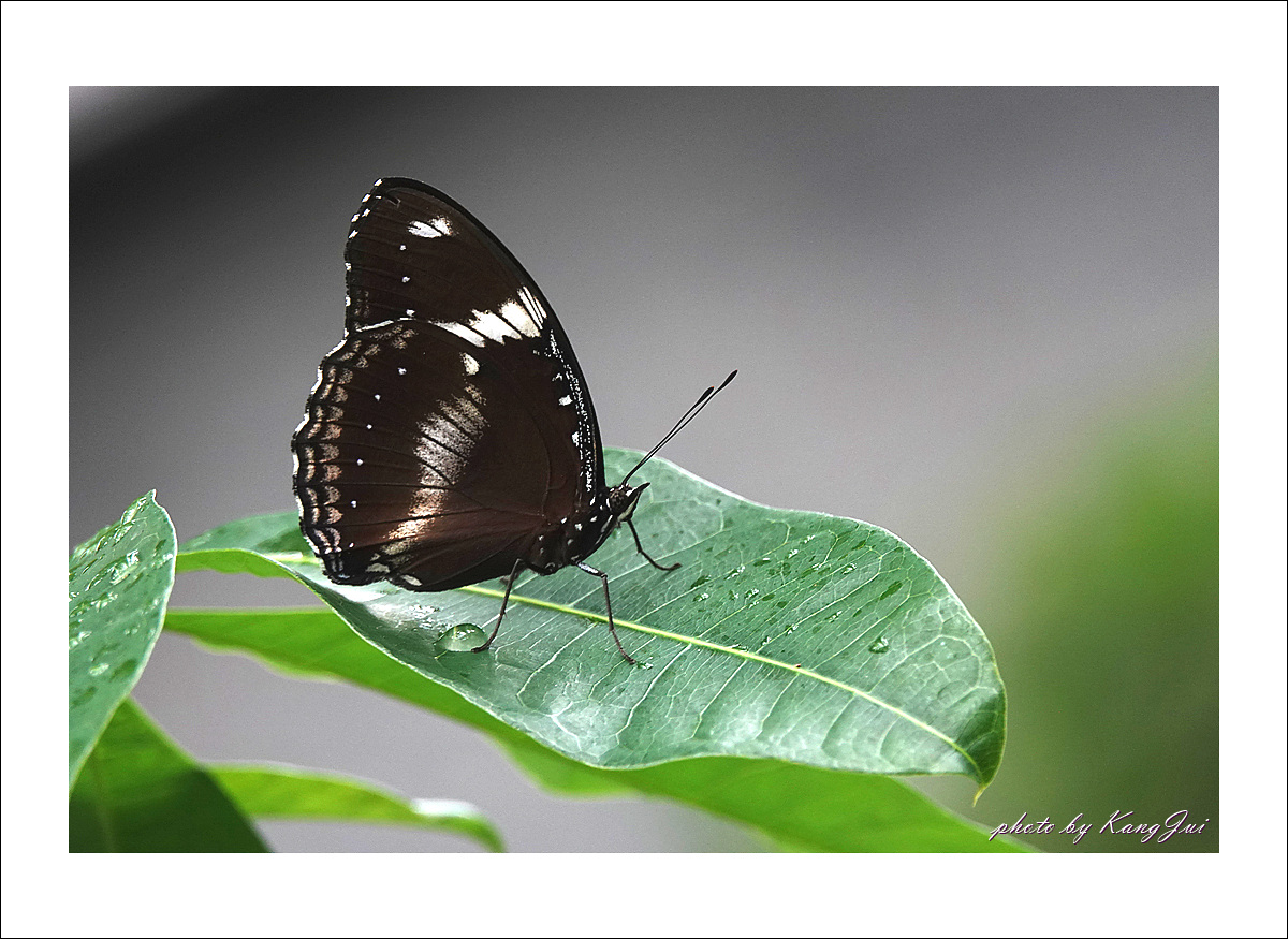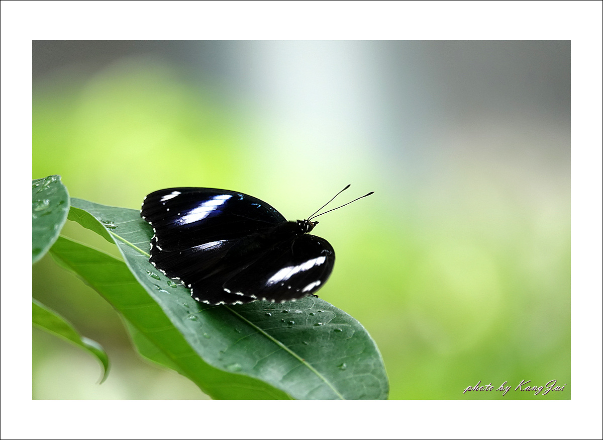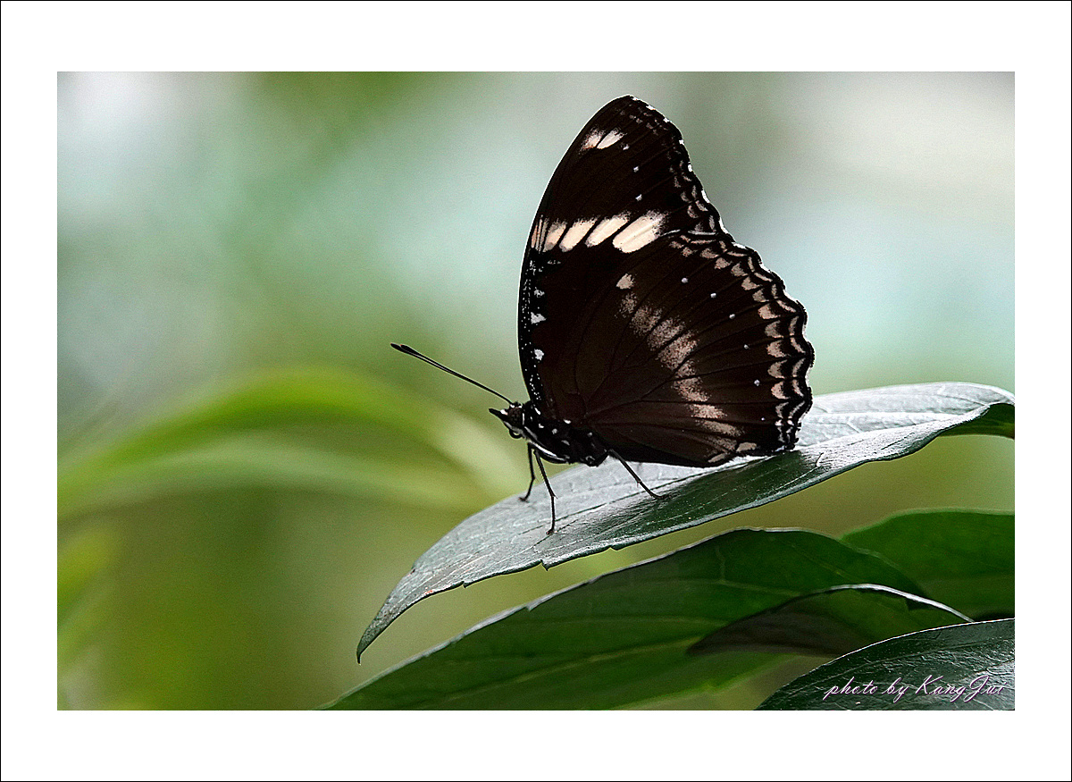 햇빛을 받으면 날개에 푸른빛이 도는데 오늘은 비 오는 날 너무나 어두운 날씨라 그 푸른빛을 제대로 보기 어려웠다. 아직은 미접으로 분류하고 있는데 서울숲나비정원에서 볼 수 있었다.