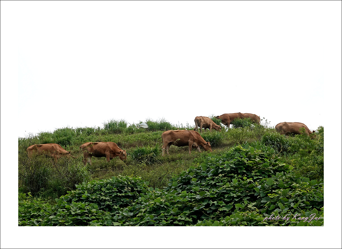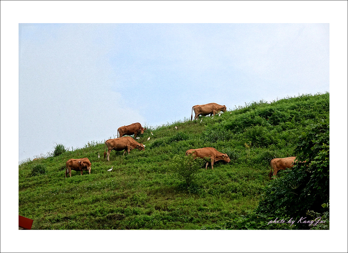 오후에는 한우목장의 한가로이 풀 뜯는 소들과
