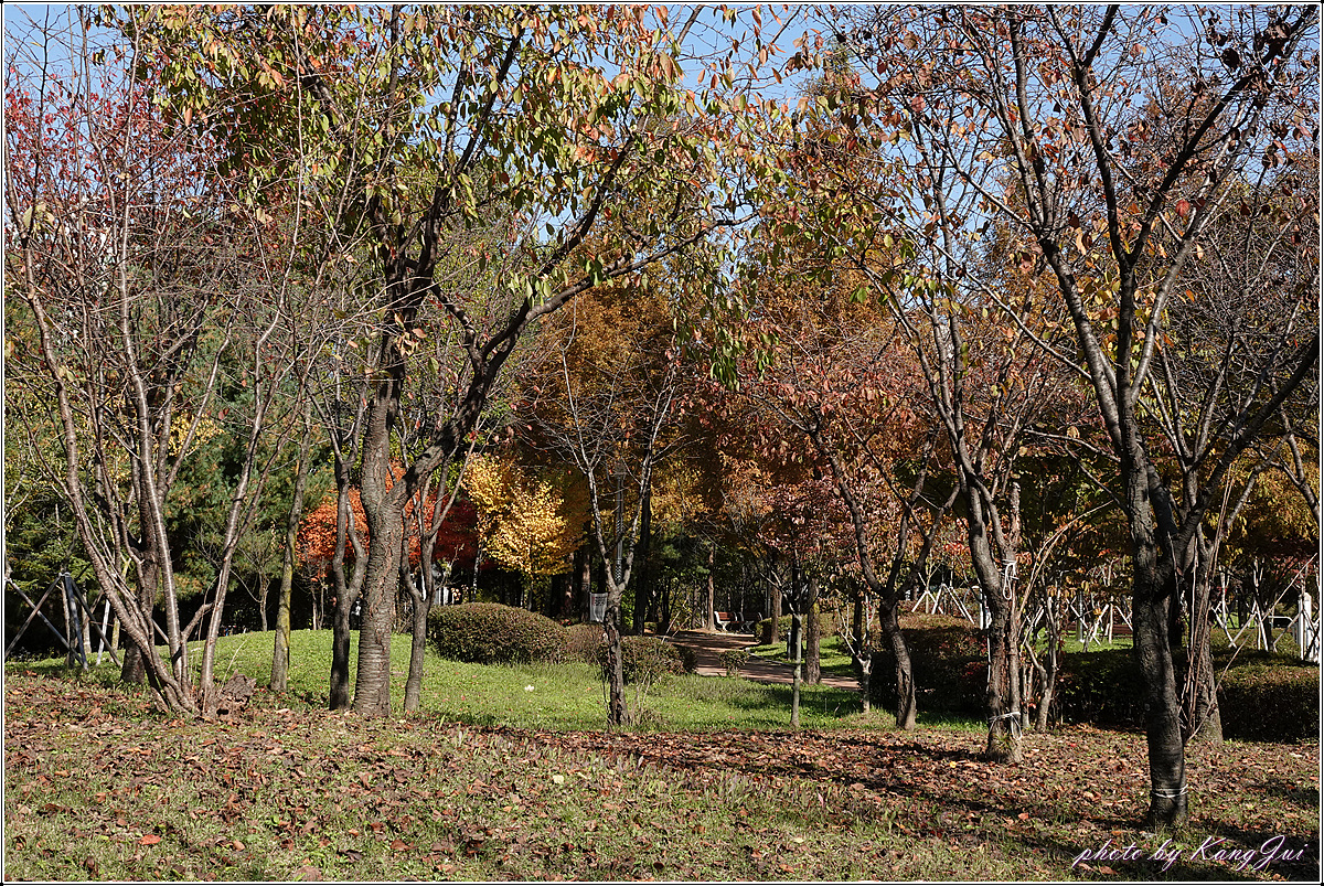더러 물들어 고운 나무도 있지만 멀리 보이는 산은 아직 푸르기만 하다.