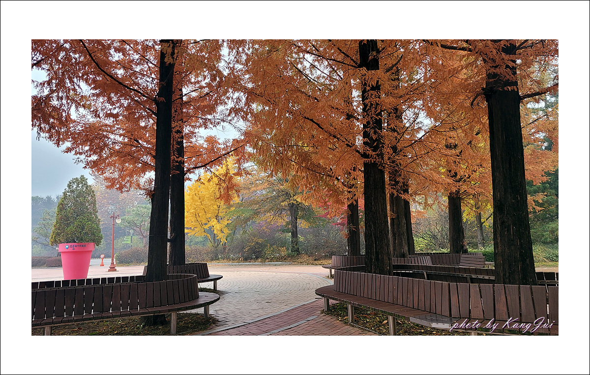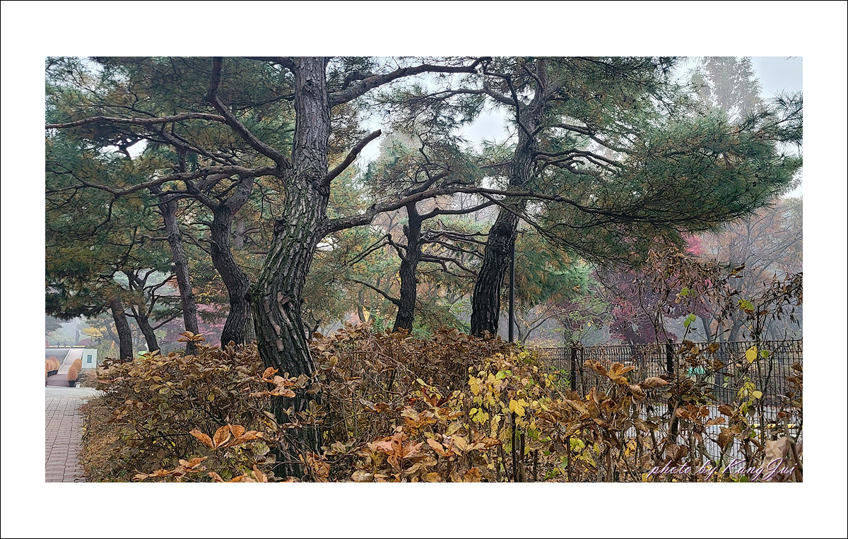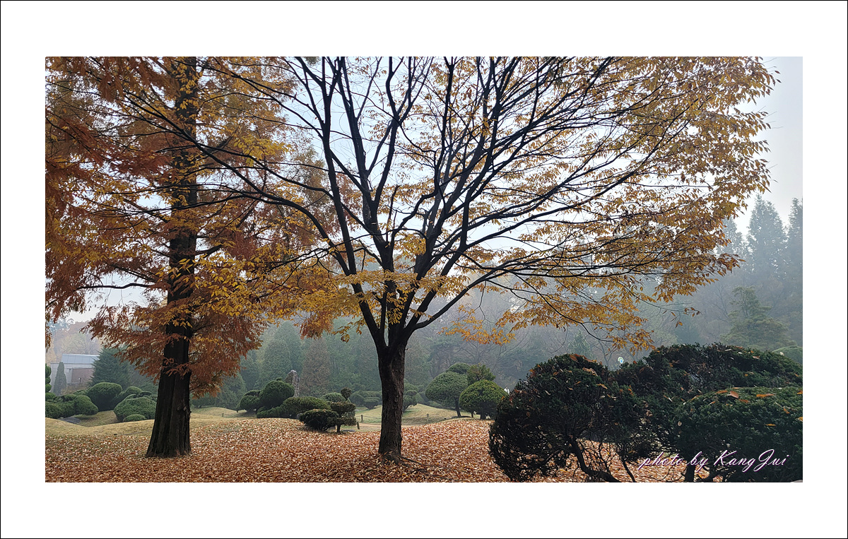 뿌연 아침은 고운 단풍을 시샘하는듯해서 살짝 아쉬웠다.