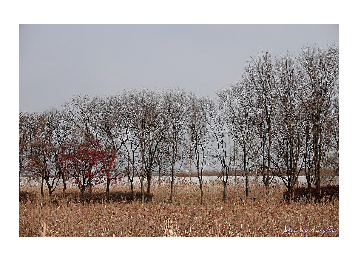 겨울로 변한 갈대밭은 바랜채 침묵하고
