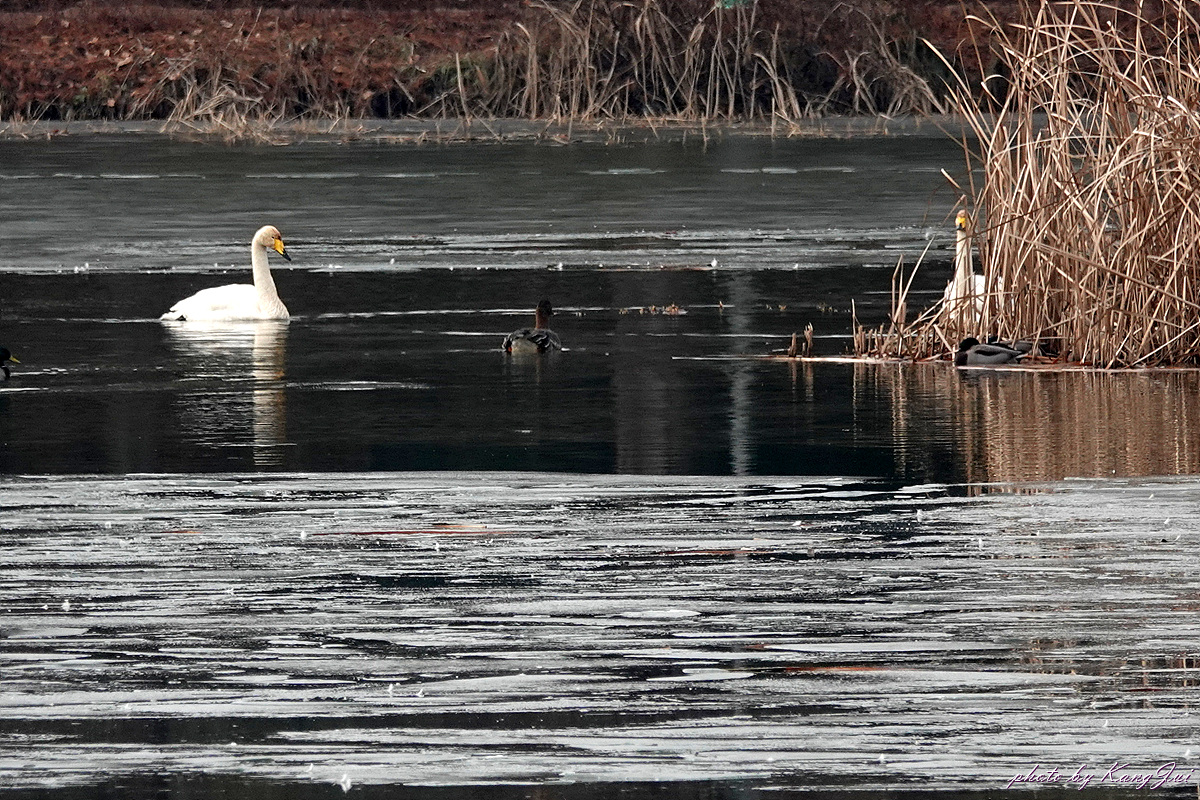 일월저수지 먼 거리에 큰고니