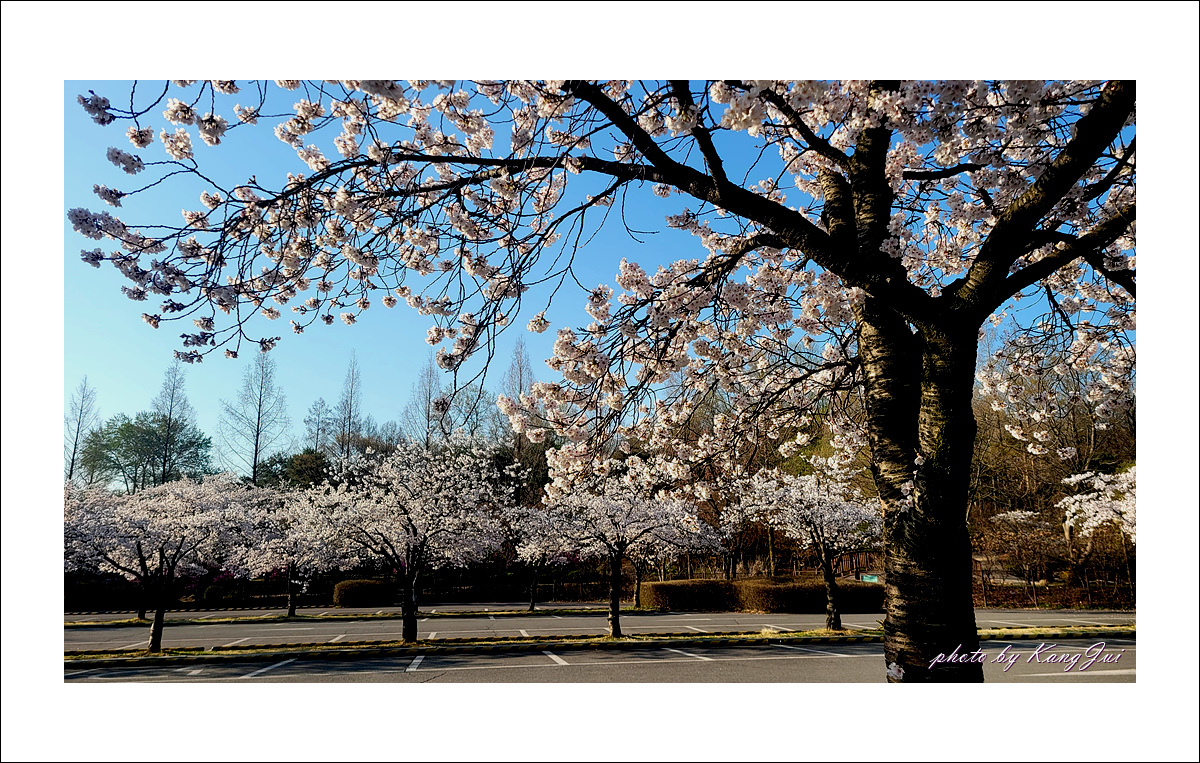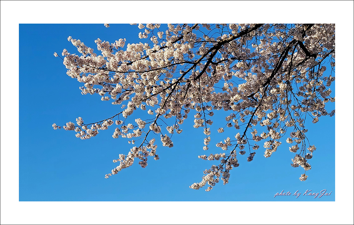 만개한 벚꽃이 파란 하늘에 더 빛난다.